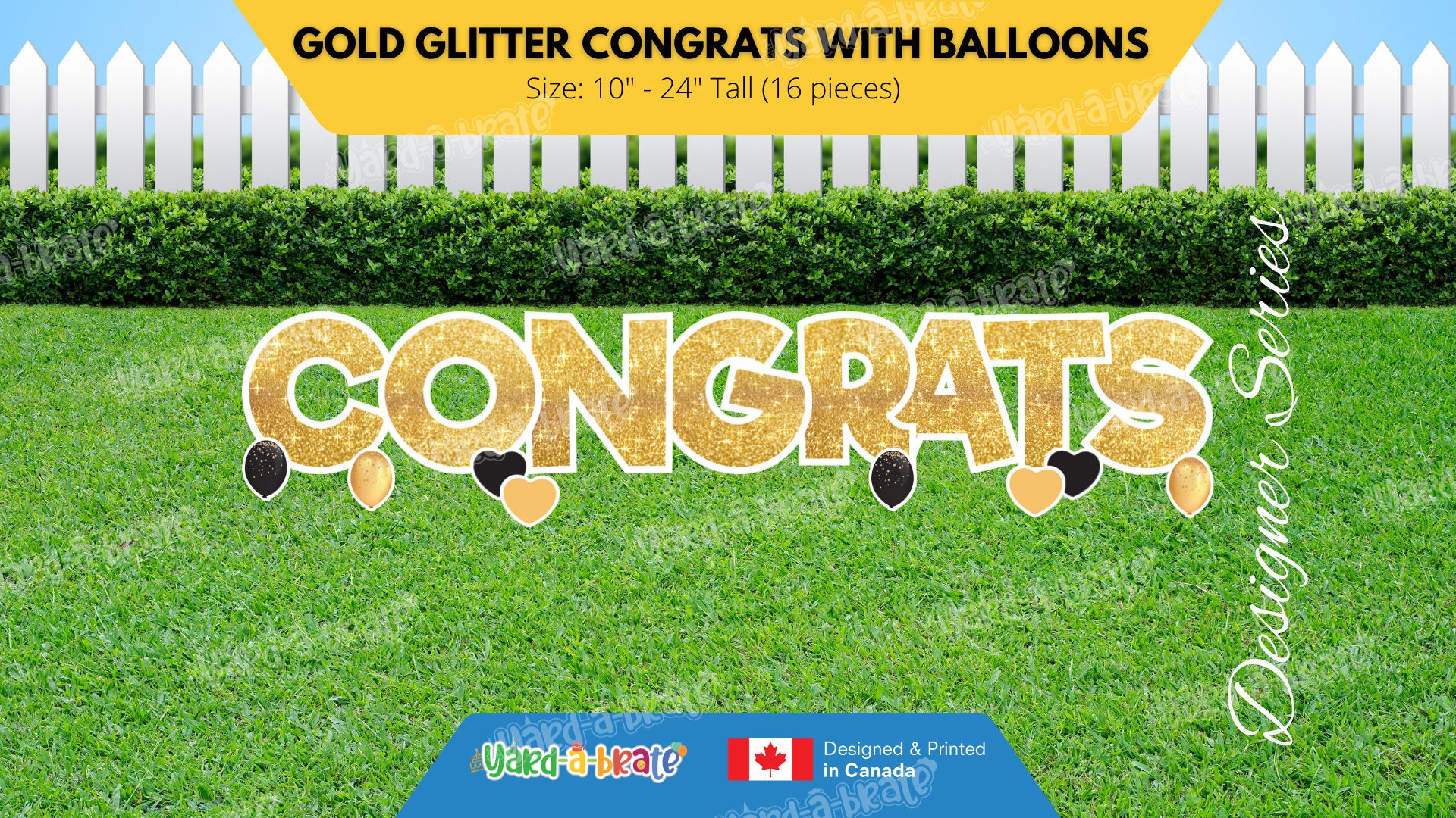Gold Glitter CONGRATS with Balloons Package (Total 16 pcs) | Birthday Yard Sign (Y-0238)