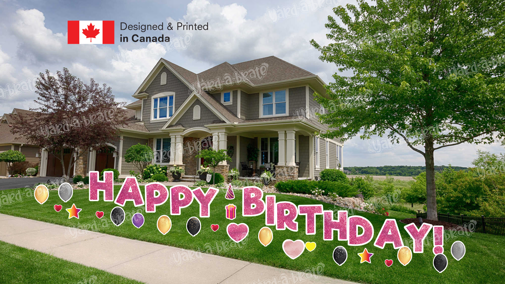 Pink Glitter Happy Birthday Letters Yard Card Sets 16" or 24" Tall (Total 36pcs) | Yard Sign Outdoor Lawn Decor | Happy Birthday Set