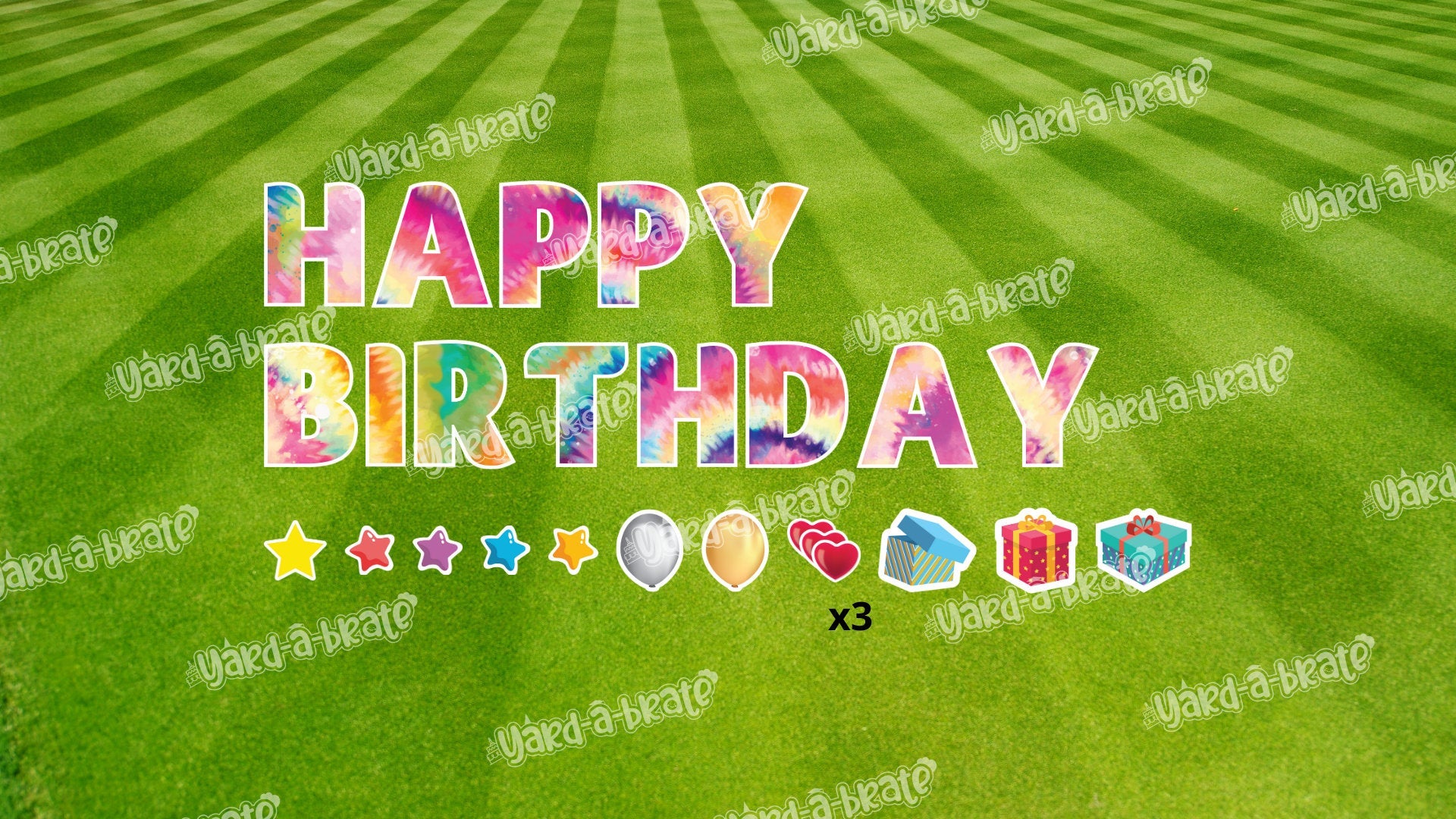 Happy Birthday (Tie Dye Style) Letters Yard Card Sets 18" Tall (Total 26pcs) | Yard Sign Outdoor Lawn Decor | Happy Birthday Set