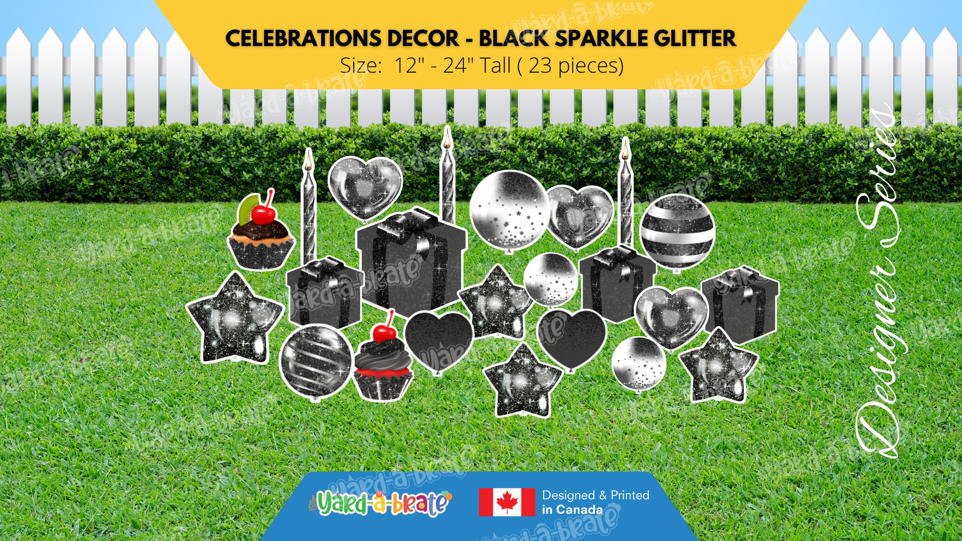 Celebrations Decor - Black Sparkle Glitter - 12" - 24" Decors - (Total 23 pcs) | Yard Sign Outdoor Lawn Decorations | Yardabrate Designer Series