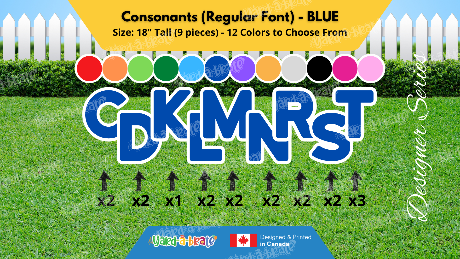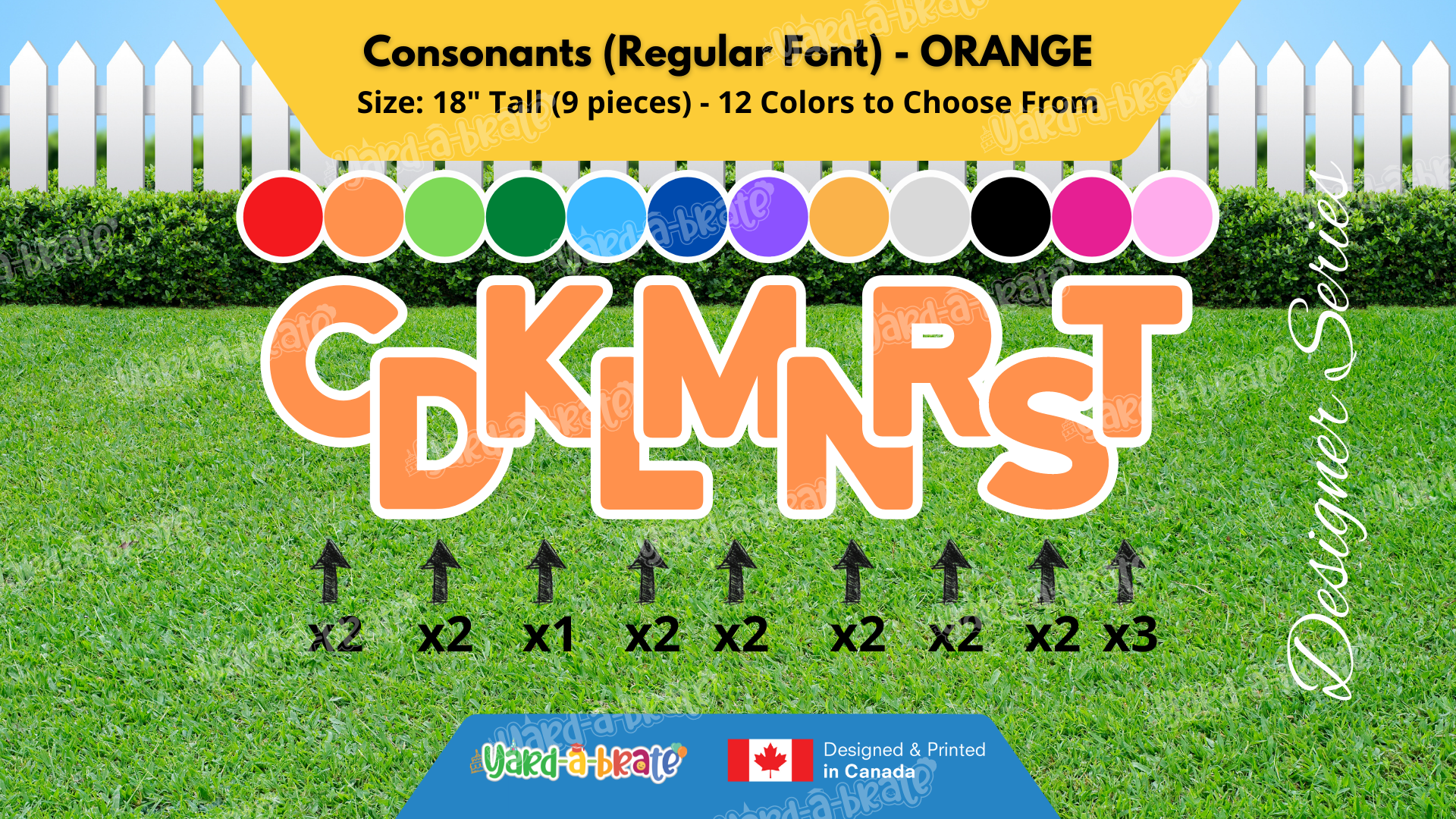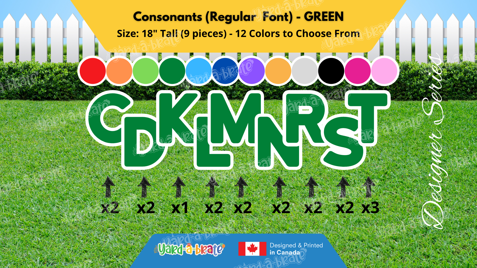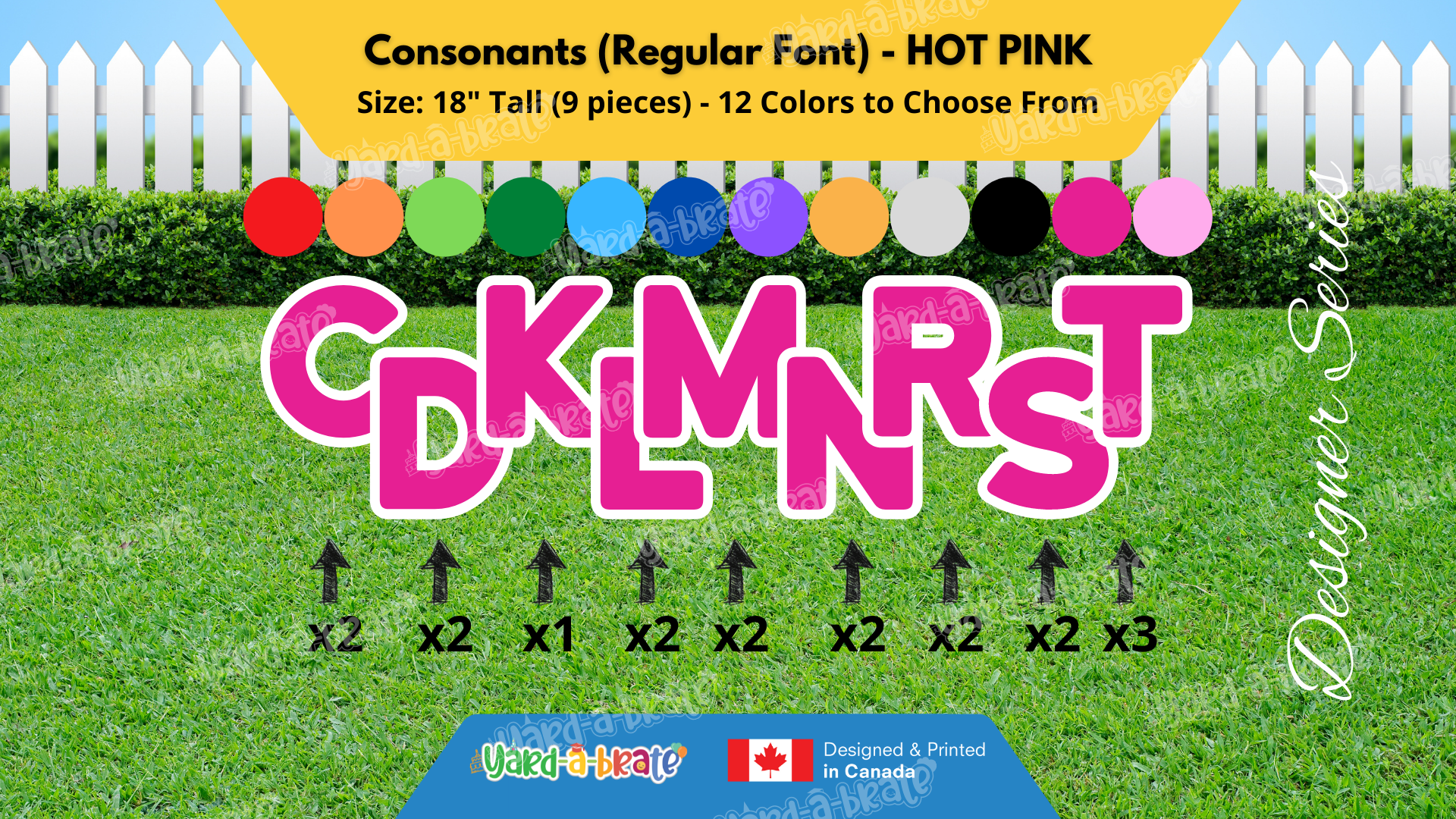 Consonants (Solid Color) 18" Tall Individual Lettering (Regular Font) Total 18 pcs | Yard Sign Rental Business | Printed in Canada