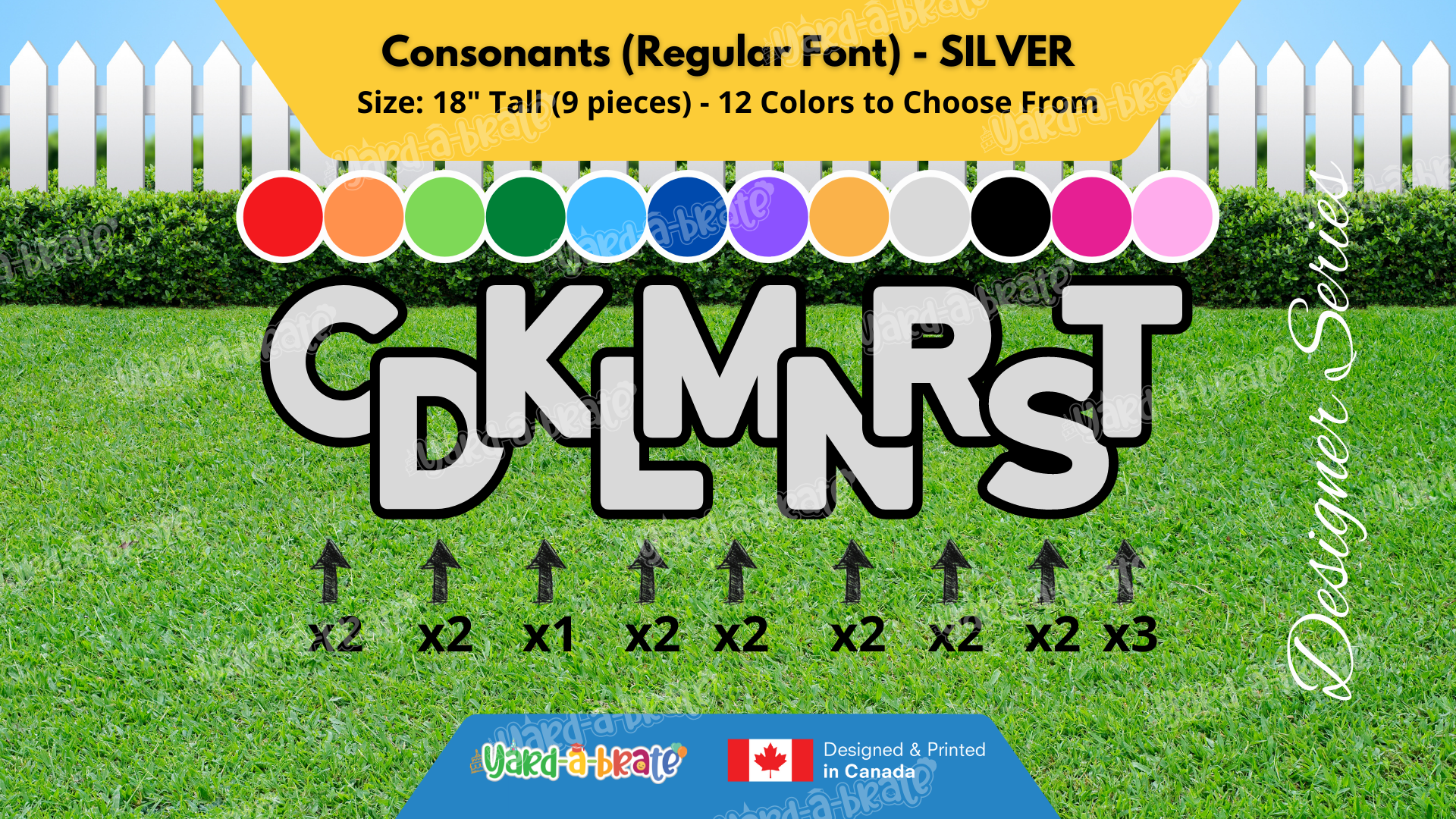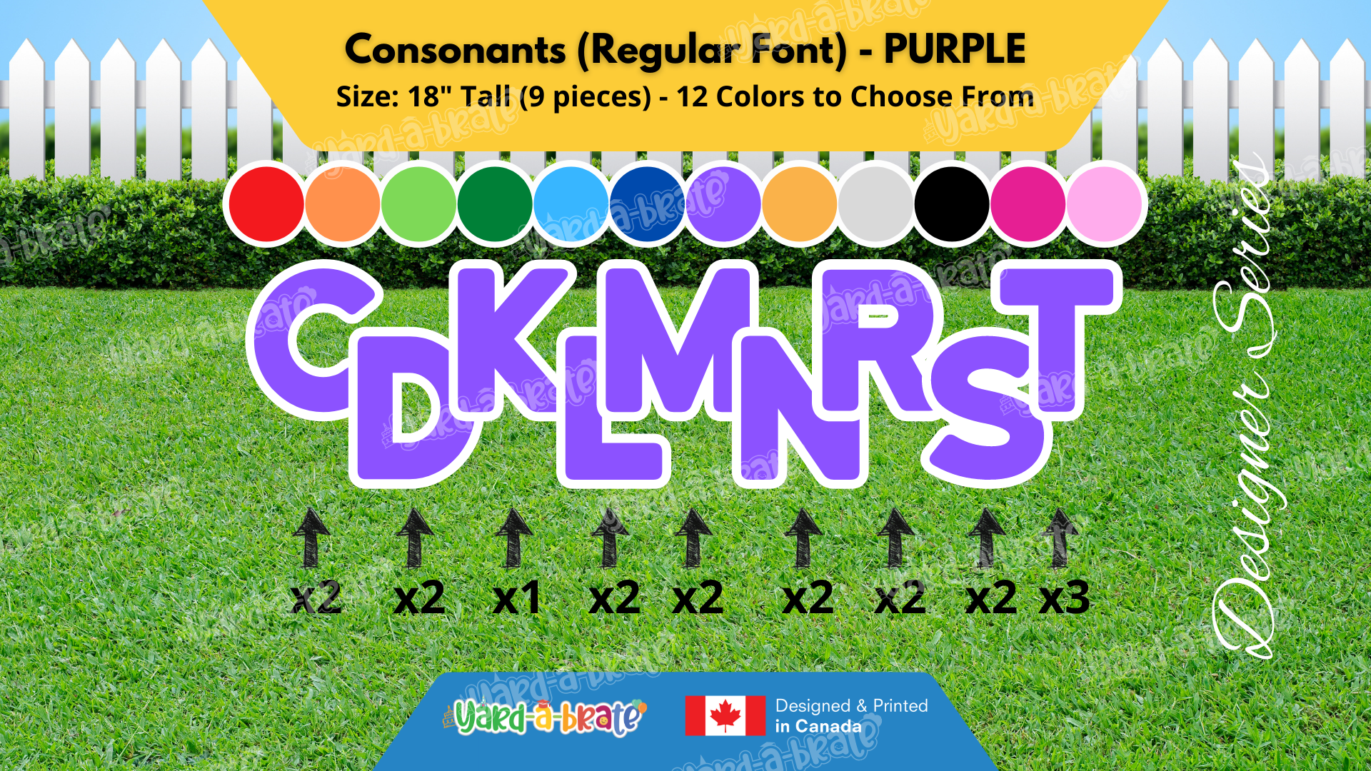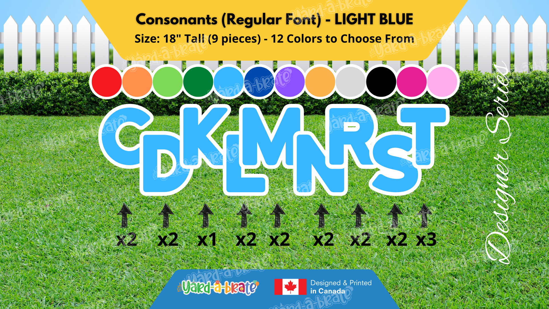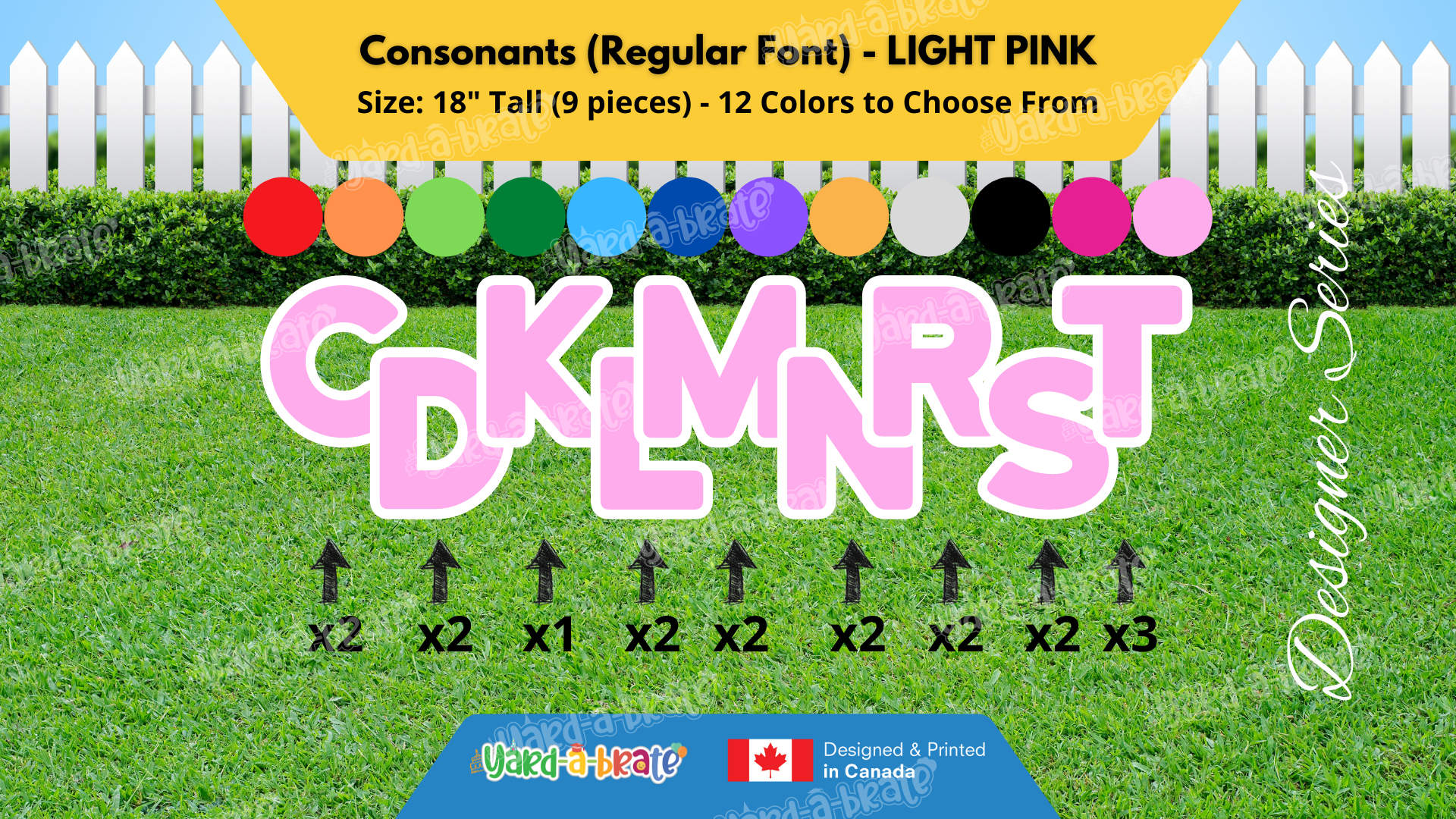 Consonants (Solid Color) 18" Tall Individual Lettering (Regular Font) Total 18 pcs | Yard Sign Rental Business | Printed in Canada