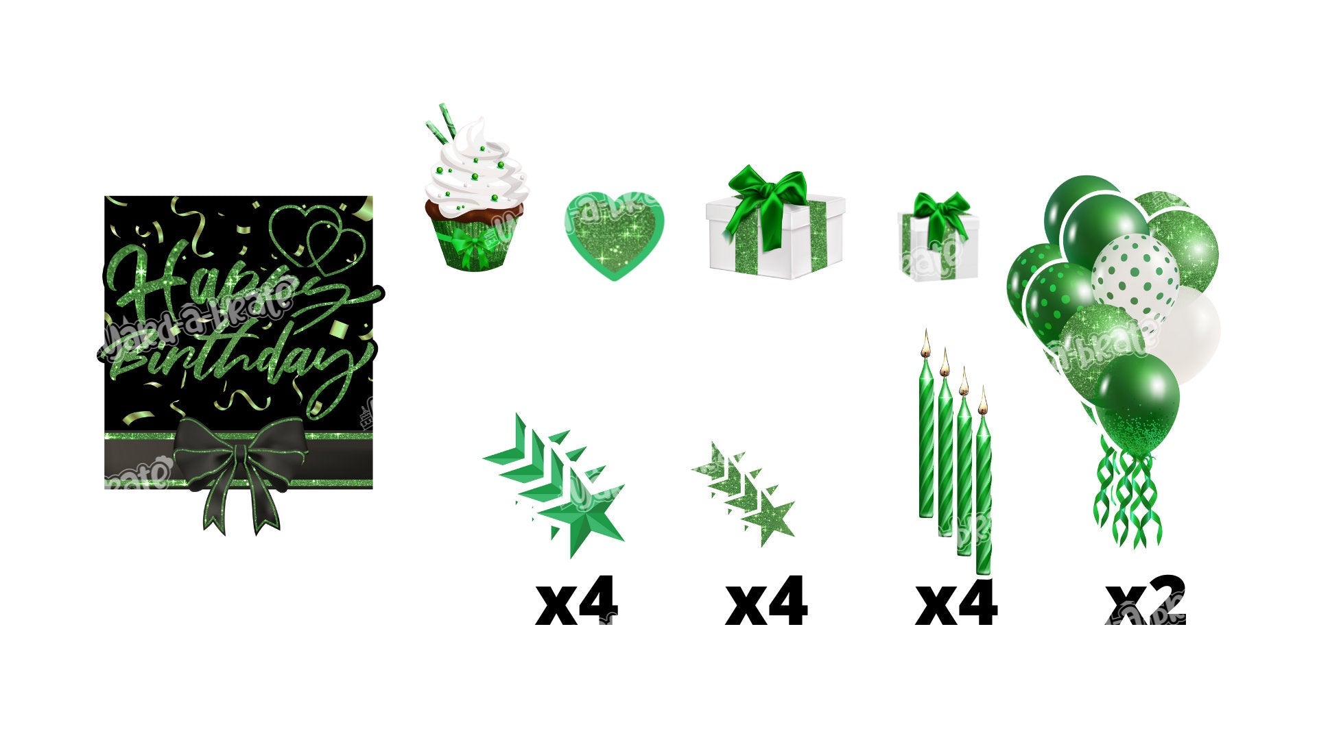 Happy Birthday - Green Sparkle Glitter Style Package (Total 19 pcs)