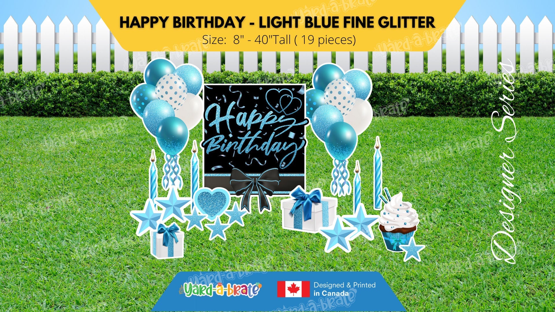 Happy Birthday - Light Blue Fine Glitter Style Package (Total 19 pcs) | Yard Sign Outdoor Lawn Decorations | Yardabrate Designer Series