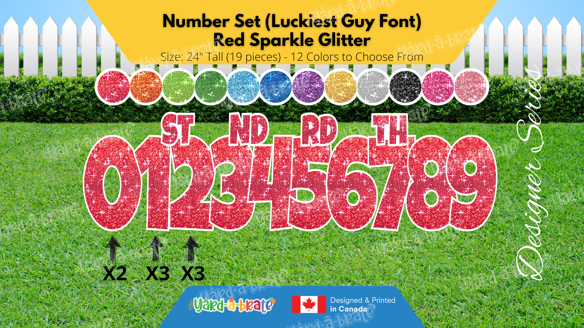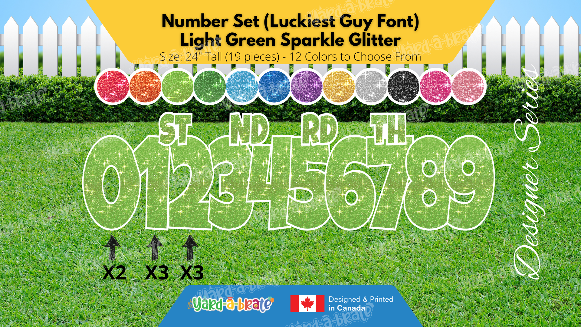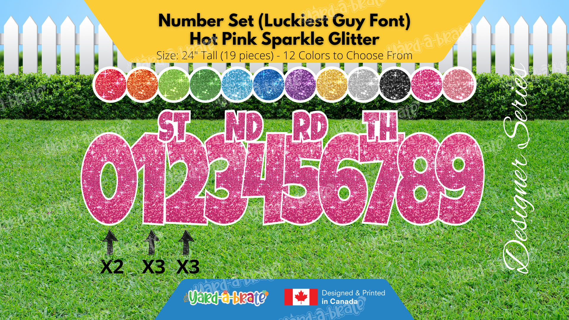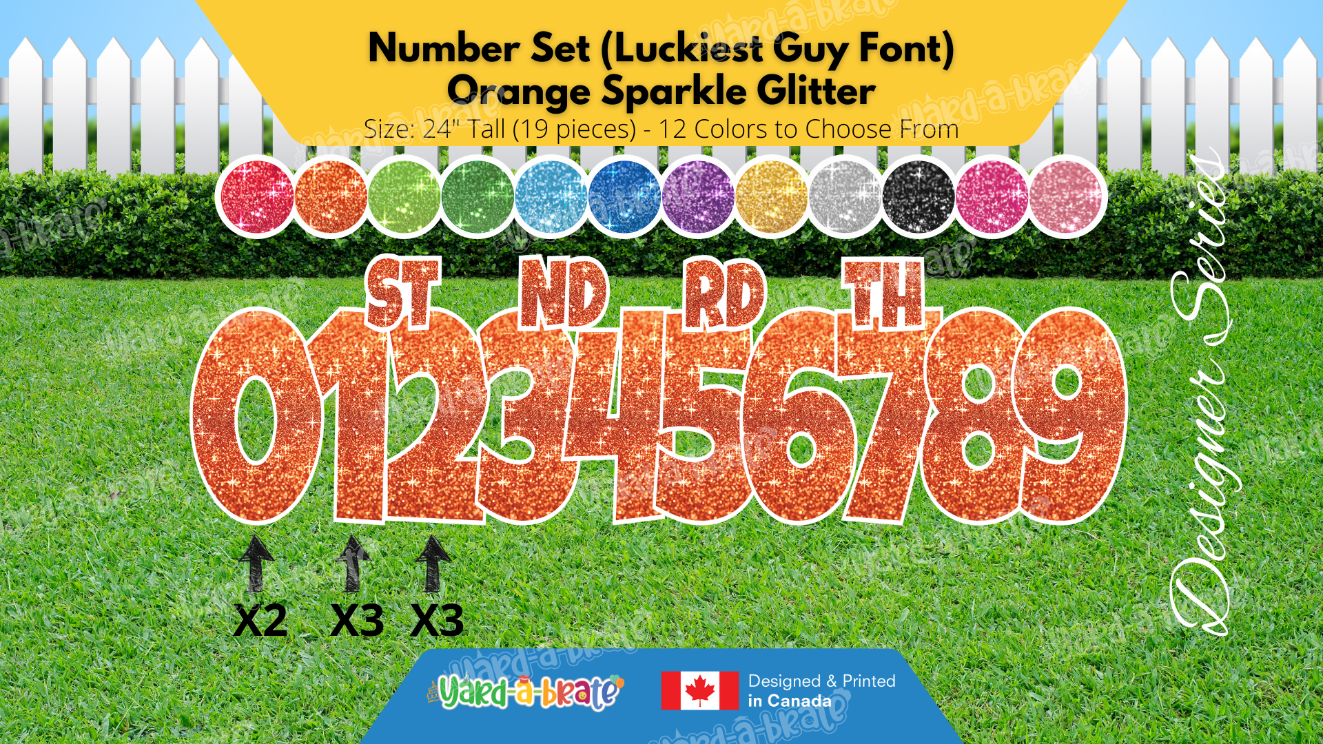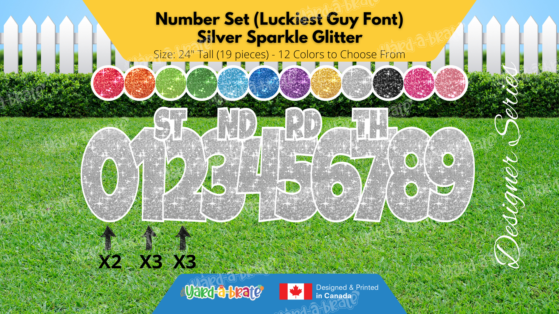 Number Set (Sparkle Glitter) 24" Tall Individual Lettering (Luckiest Guy Font) Total 19 pcs | Birthday Yard Sign (Y-0399)