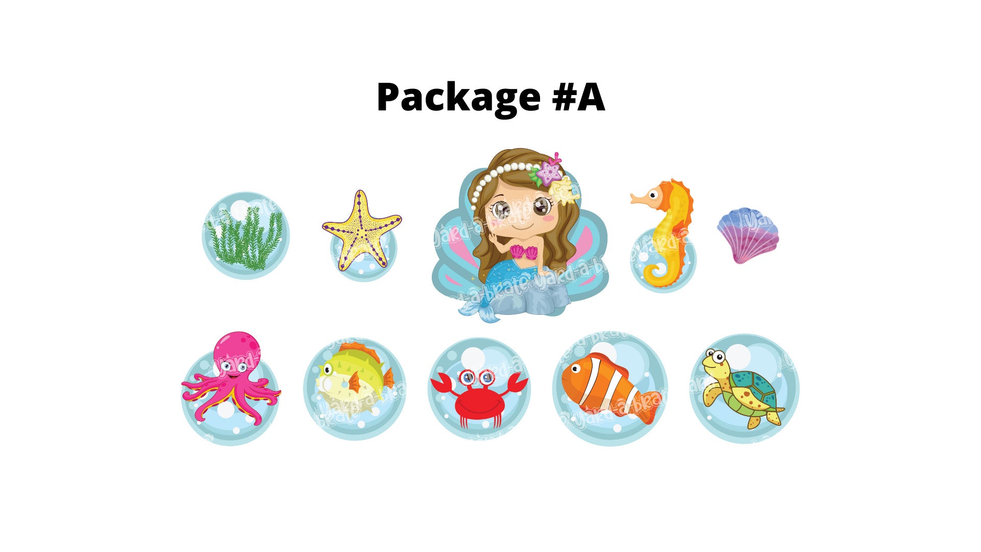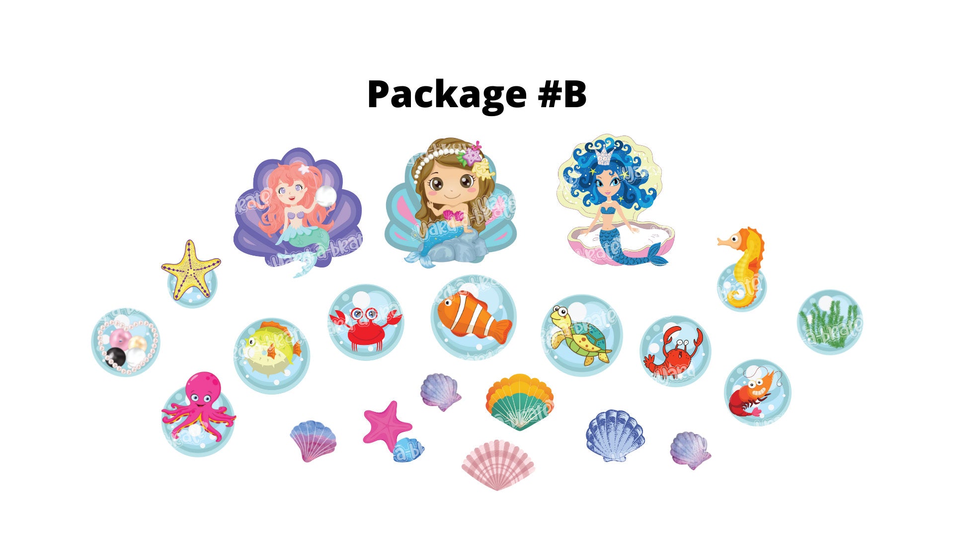 Mermaid Package - Mermaid 24" Tall + Bubbles 15" Tall + Decors (Total 10pcs or 21 pcs)