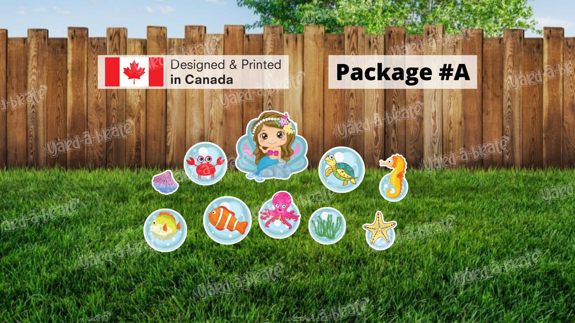 Mermaid Package - Mermaid 24" Tall + Bubbles 15" Tall + Decors (Total 10pcs or 21 pcs) | Yard Sign Outdoor Lawn Decorations