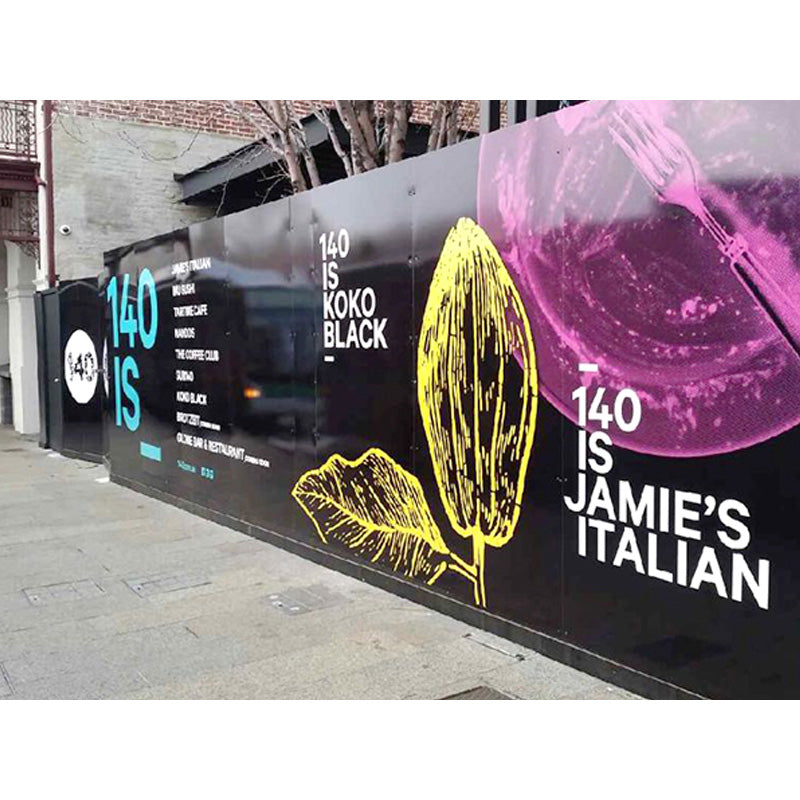 Hoarding Graphic / Hoarding Signage is a form of advertising on the temporary construction walls in malls and fences seen around construction sites. The hoardings are typically in malls and very busy city areas where the traffic and pedestrian flow is high. The barriers are placed to keep people from getting injured at the construction site and to hide the site from view while the new store or building is under construction. The bare walls are perfect for static advertising. An interesting, eye-catching ad can be placed in the view of thousands of people. Many of them will pass by daily, further reinforcing a message or product and a sneak peek of what store or brand is coming.
