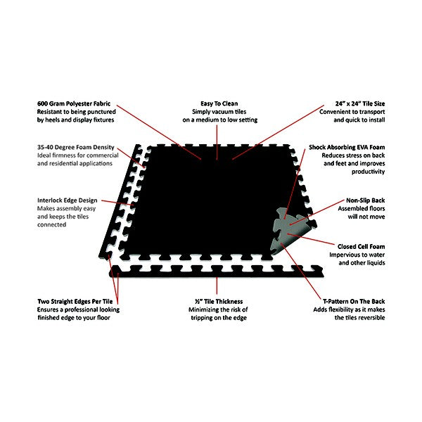 The STRIDO anti-fatigue interlocking carpet tile not only adds a professional look to your booth buts can add to the success of your show.