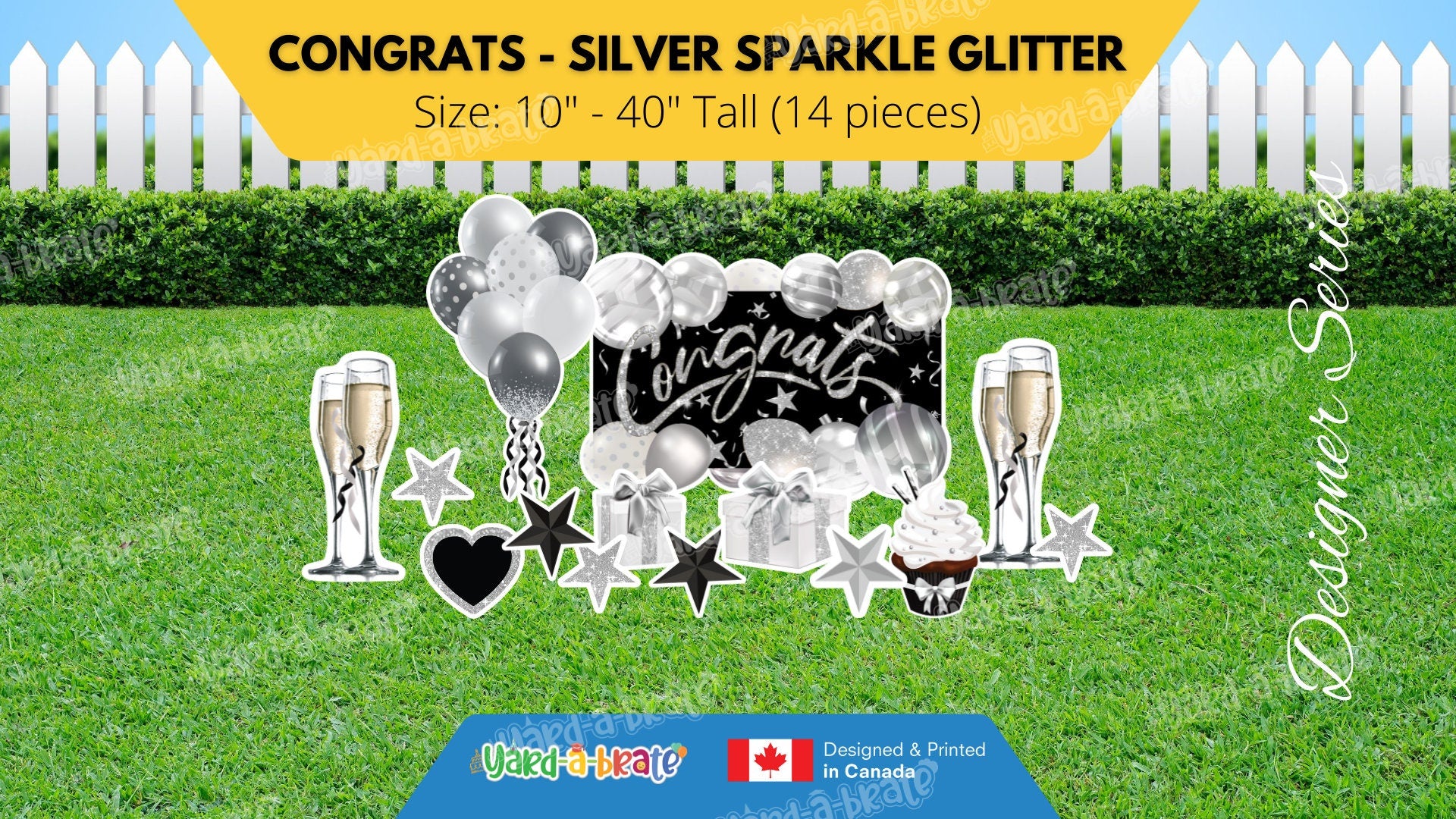 Congrats - Silver Sparkle Glitter Style Package (Total 14pcs) | Yard Sign Outdoor Lawn Decorations | Yardabrate Designer Series