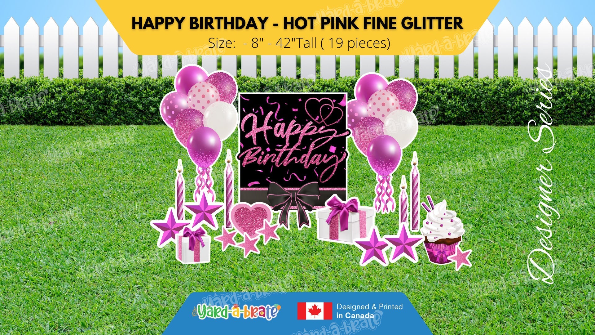 Happy Birthday - Hot Pink Fine Glitter Style Package (Total 19 pcs) | Yard Sign Outdoor Lawn Decorations | Yardabrate Designer Series