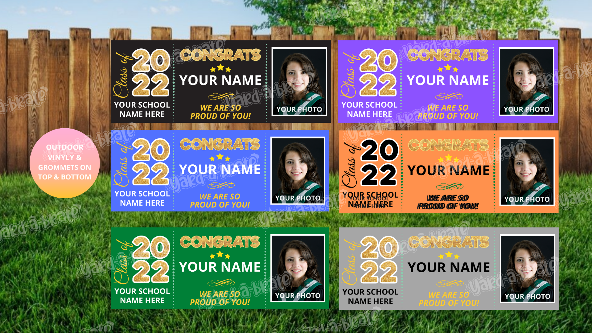 Class of 2022 Sign Package – Hanging Banner 96" wide x 36" tall + Decors (Total 17pcs)
