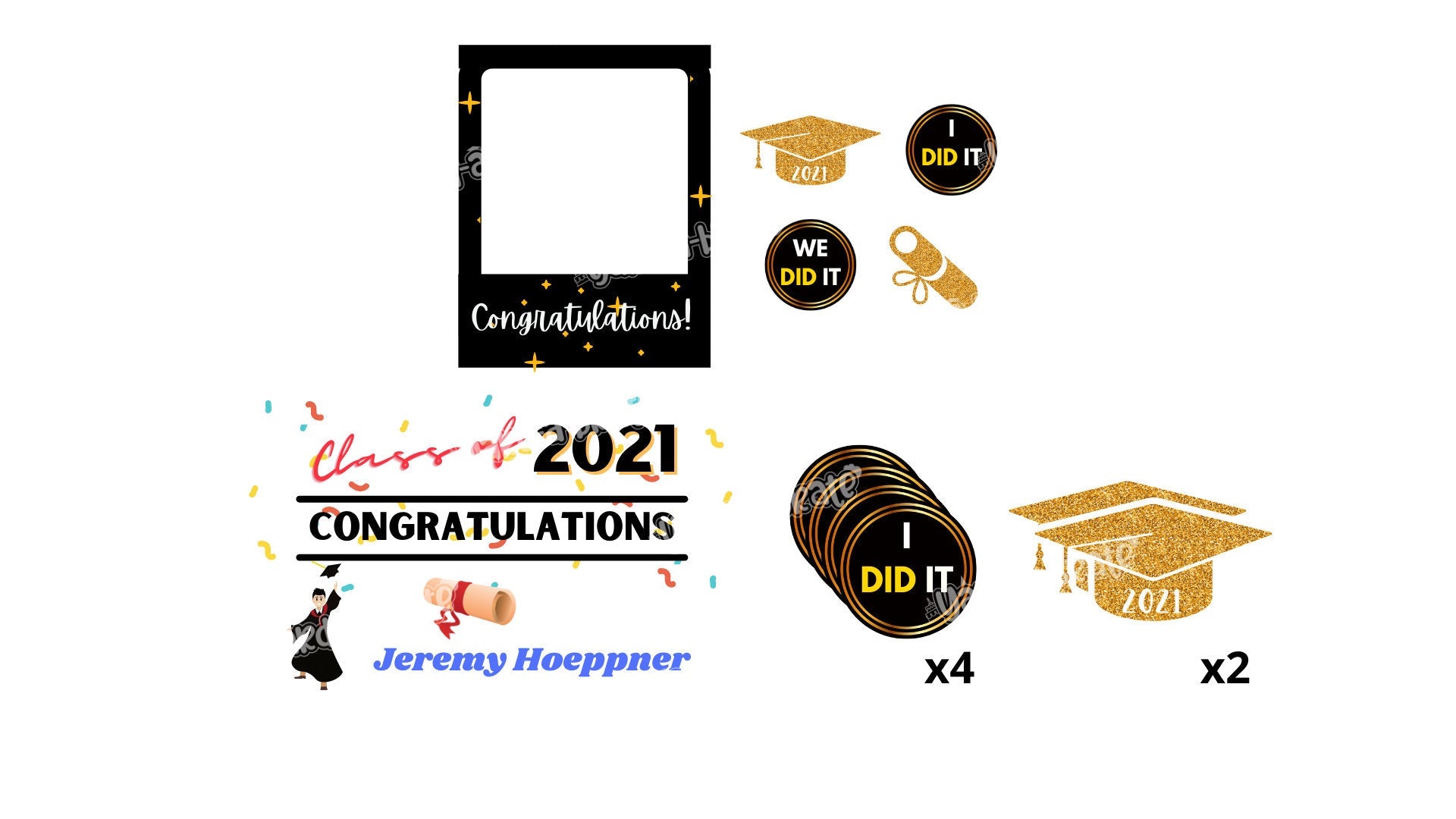 Graduation Male/Female Style Sign and Handheld Photo Frame (Total 12pcs)