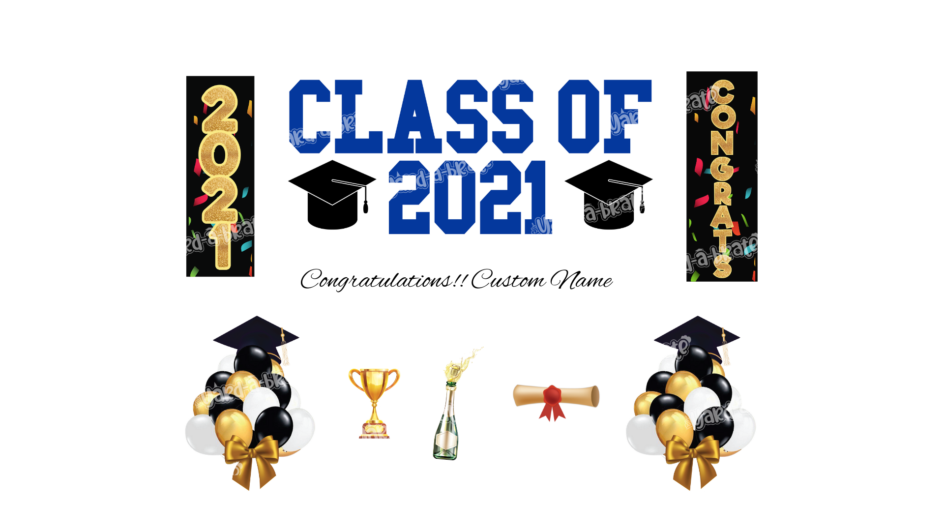 Graduation Sign Package – Custom Name Sign 24” Tall + Decors (Total 8 pcs)