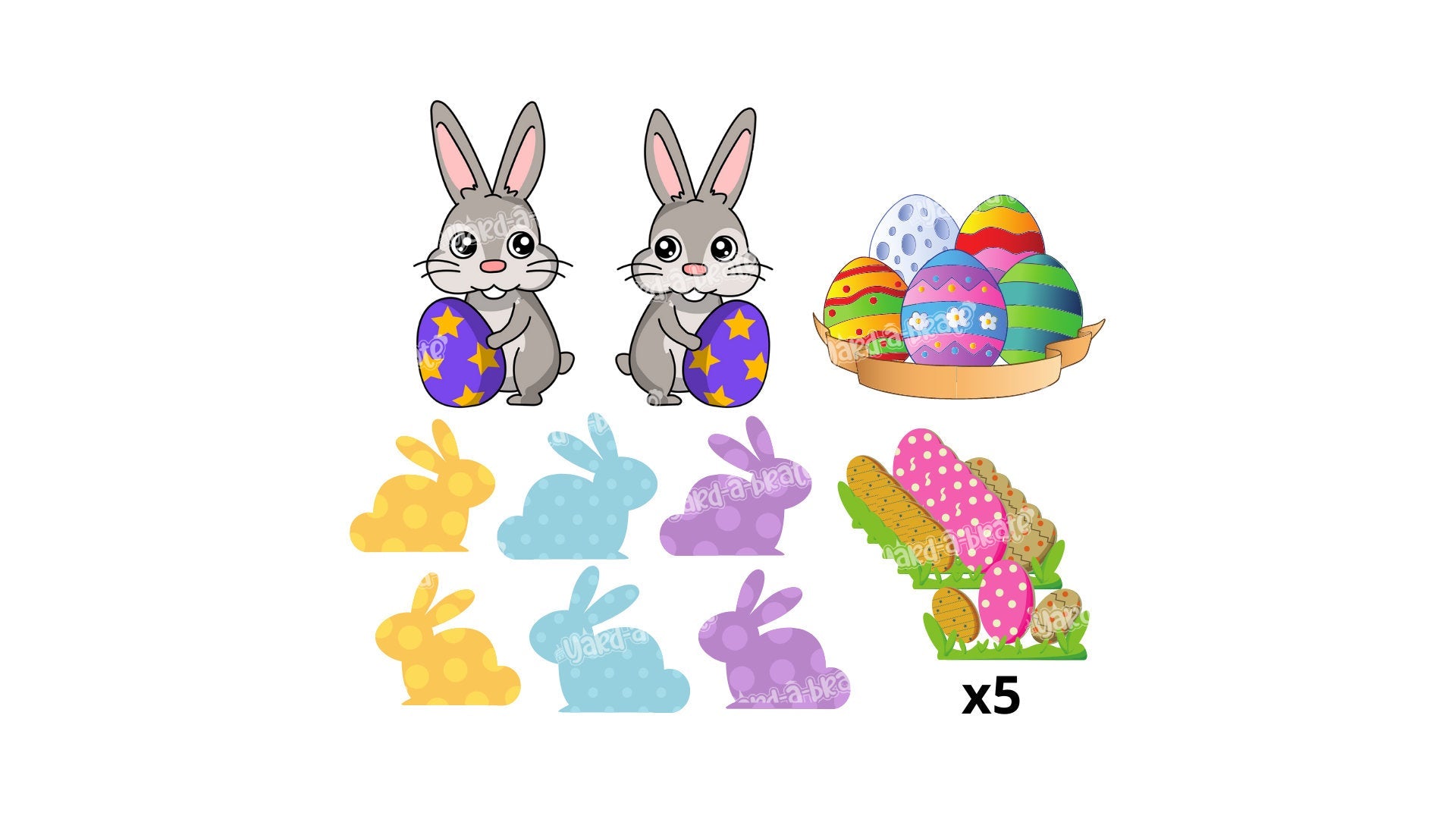 Happy Easter Bunny Sign (24" tall) + 12 Decors (Total 14pcs set) | Yard Sign Outdoor Lawn Decorations