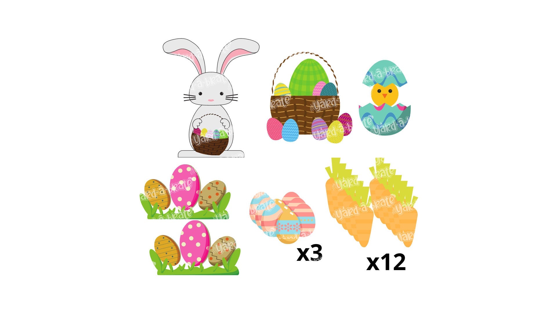Happy Easter Bunny Sign (24" tall) + 19 Decors (Total 20pcs set) | Yard Sign Outdoor Lawn Decorations