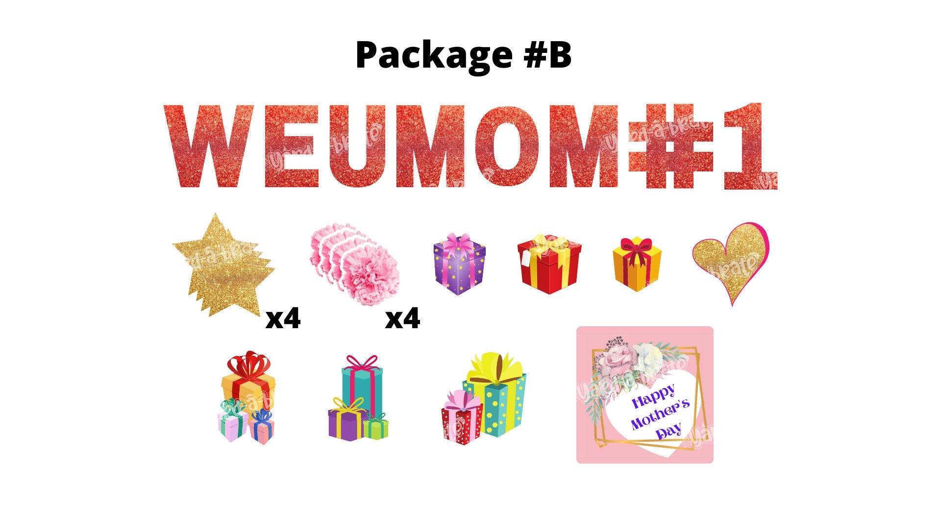 Mother's Day (We Love U Mom) - Lettering 16" Tall + Sign 24” Tall + Decors (Total 13 or 24pcs)