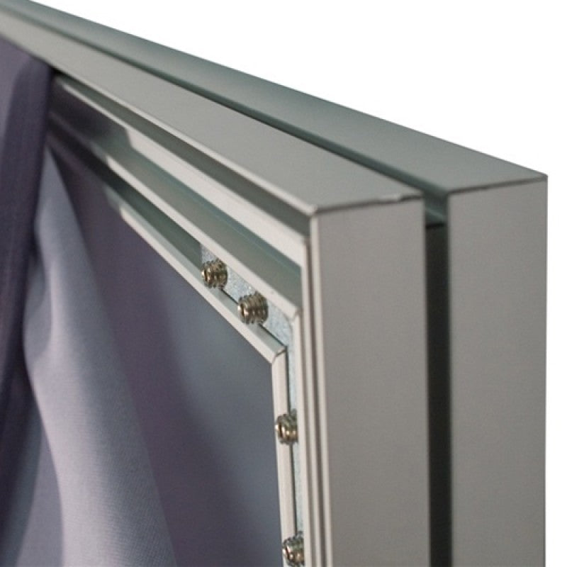 SEG (Silicone Edge Graphics) fabric wall poster frames are modern display solutions that use a slim aluminum frame and silicone-edge fabric graphics to create sleek, seamless wall displays. The silicone edge of the fabric fits snugly into a groove along the frame's perimeter, ensuring a taut, wrinkle-free presentation. These frames offer a contemporary look, ideal for retail environments, corporate offices, trade shows, and events. Their modular design allows for easy graphic changes, making them cost-effective and flexible. Installation is simple, and the frames can be customized to various sizes and shapes, providing versatility for different design and marketing needs.