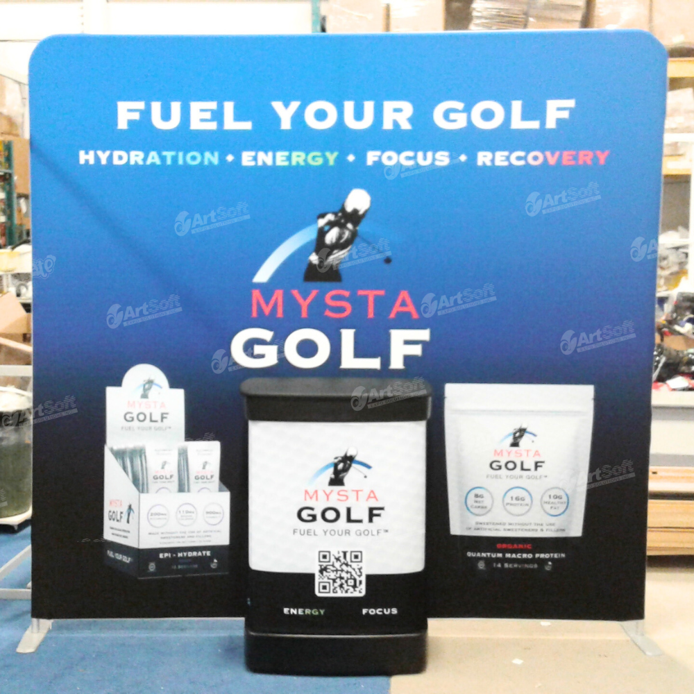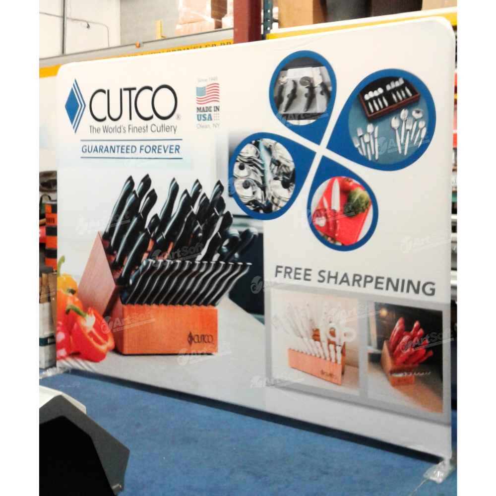 This display is very lightweight and compact, making it ideal for trade show environments and other applications requiring transportation. Made of aluminum, the tubular construction connects with a push pin without needing any tools. The full-colour pillowcase fabric graphics are die-sublimated onto high-quality fabric, which can be easily cleaned and steamed.
