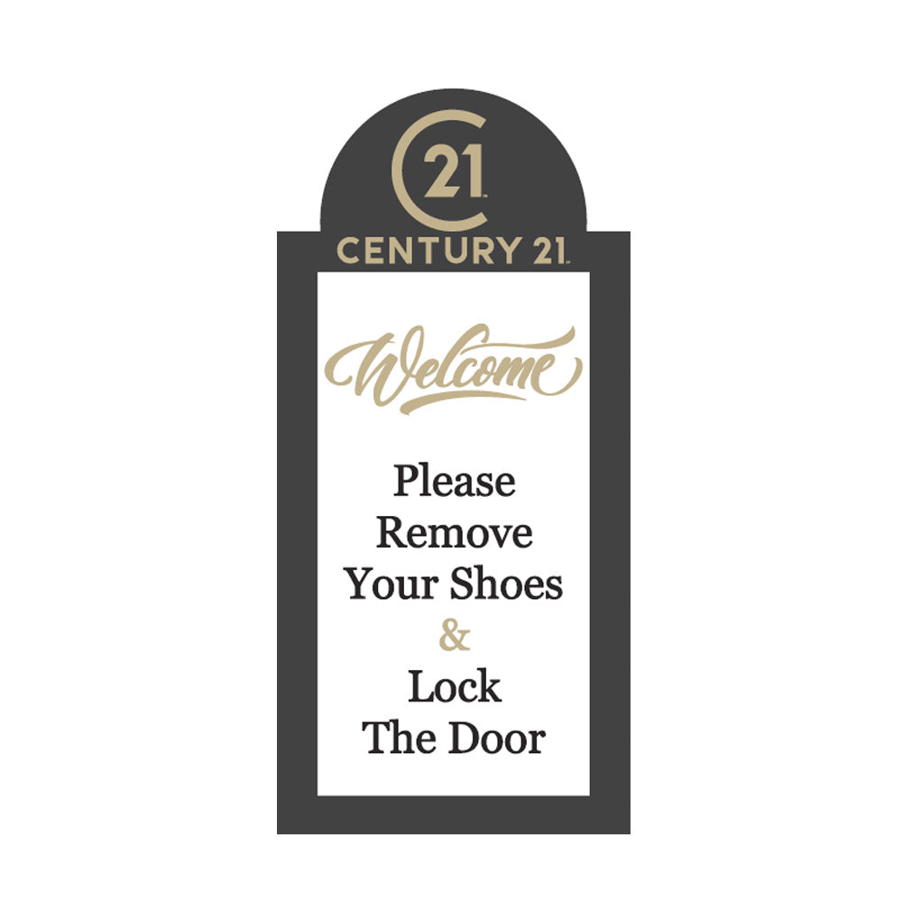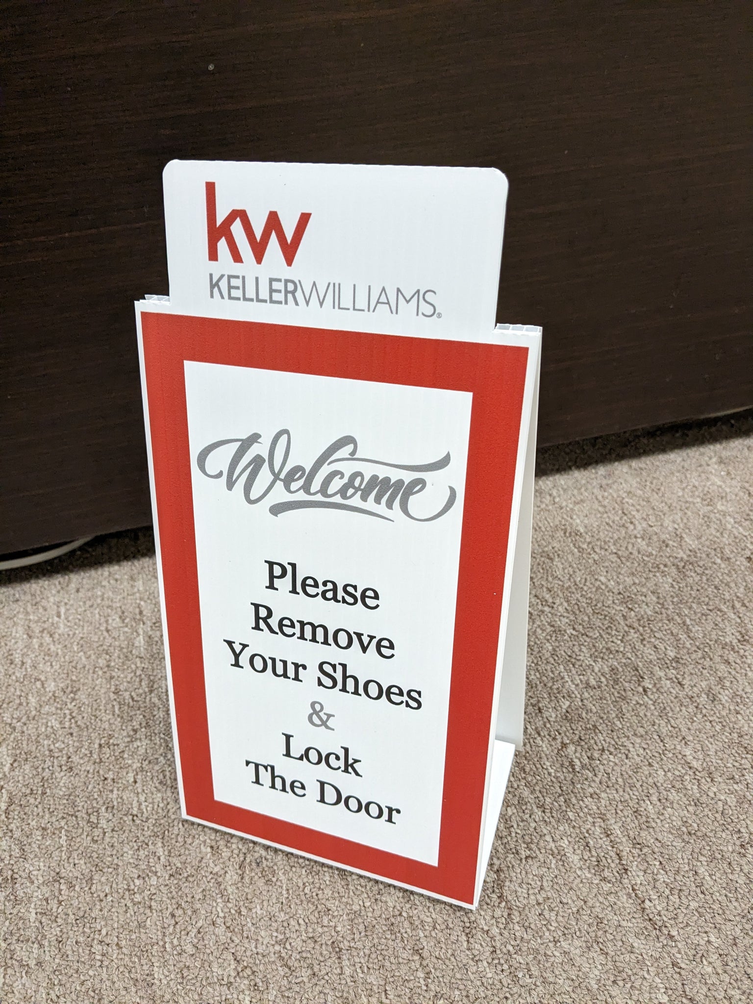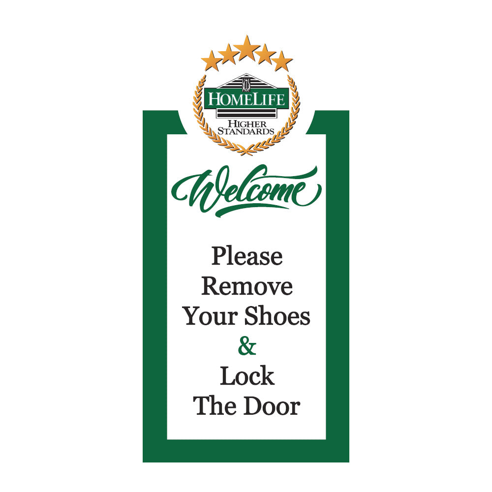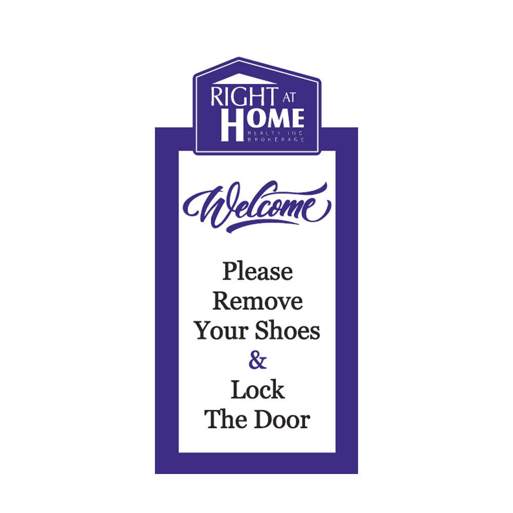 A "Remove Shoes" sign is a subtle yet impactful detail in a realtor's toolkit, fostering a clean and welcoming environment within a listed property. Placed at the entrance, it politely communicates a request for visitors to remove their shoes, preserving the cleanliness of the interior. This sign not only helps maintain the pristine condition of the home but also demonstrates the realtor's attention to detail and commitment to presenting the property at its best. It conveys a sense of respect for the homeowner's space and sets a positive tone for potential buyers, ensuring a favorable first impression during property tours.