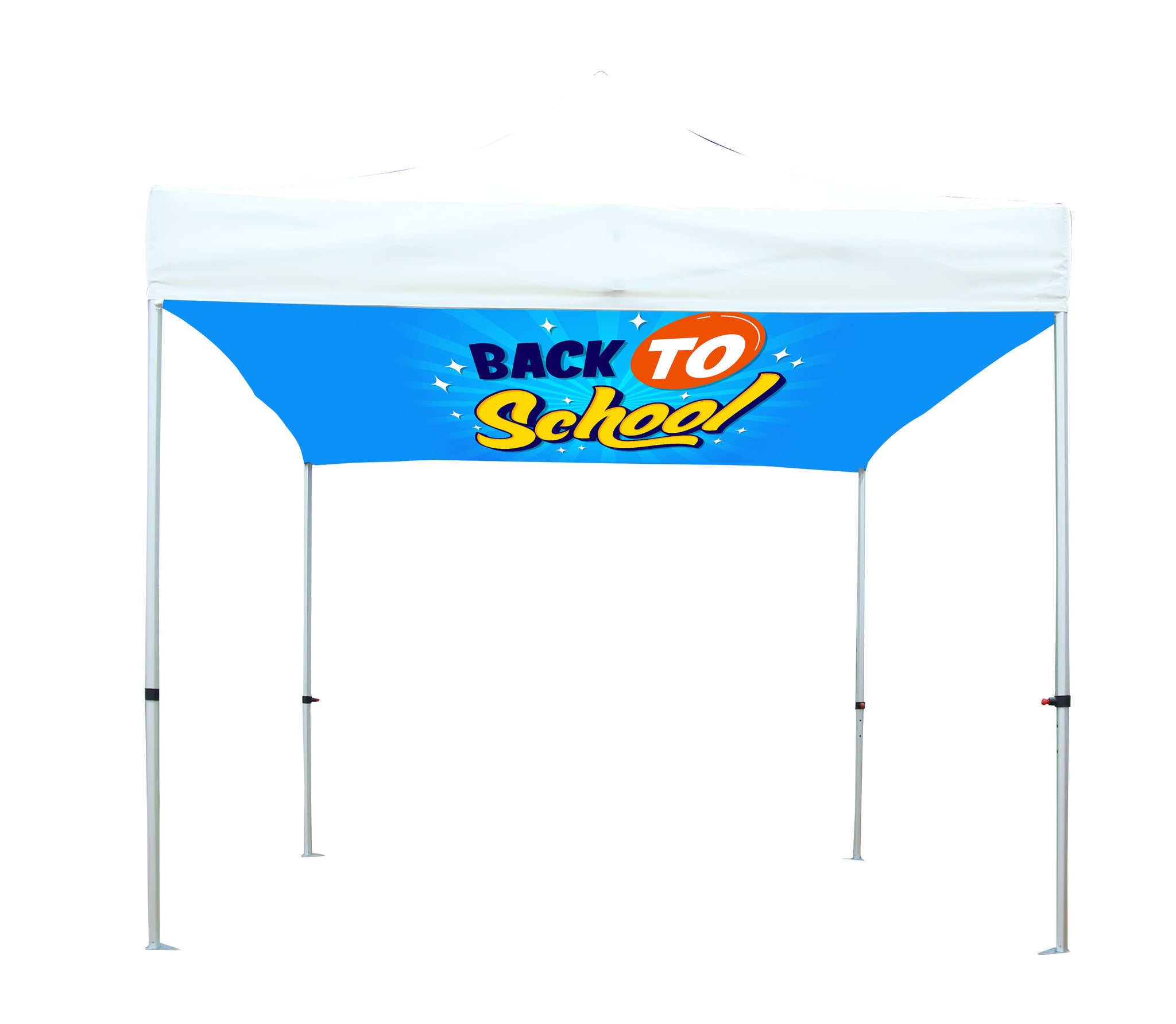 These canopies are a standard 10’ x 20’ size. Telescopic legs snap into place offering a range of heights. This lightweight system includes a protective dust cover to use while in storage.