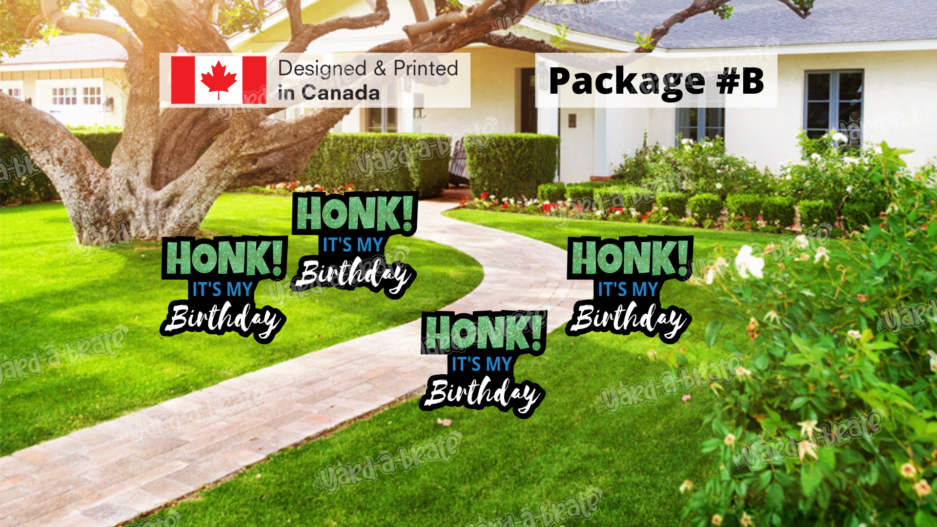 HONK! It's my Birthday Signs Green Glitter - Blue Text Package – 14" or 20" Tall Decors (Total 4 or 9 or 13 pcs)
